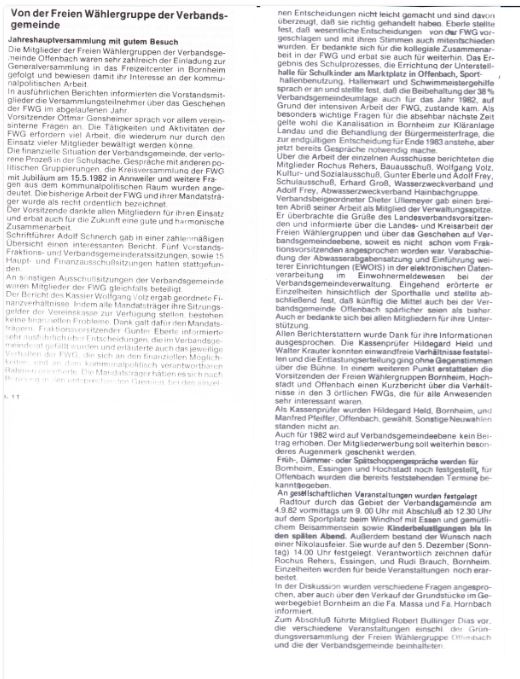 Zur jährlichen Mitgliederversammlung finden sich 33 Mitglieder im Nebenzimmer des Freizeitzentrums "Bersch", Bornheim, ein. Neben den üblichen Berichten steht nur die Wahl der Kassenprüfer an; diese werden Hildegard Held und Manfred Pfeiffer.