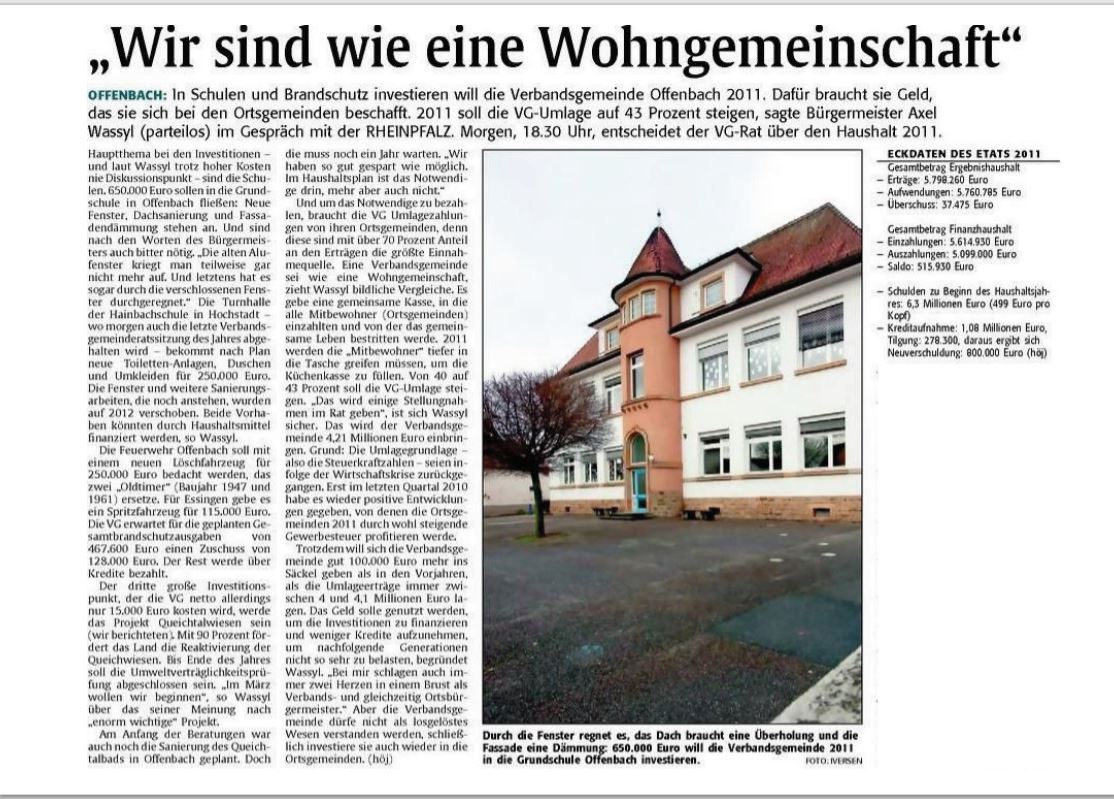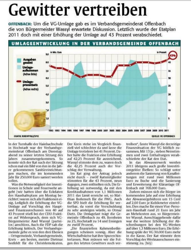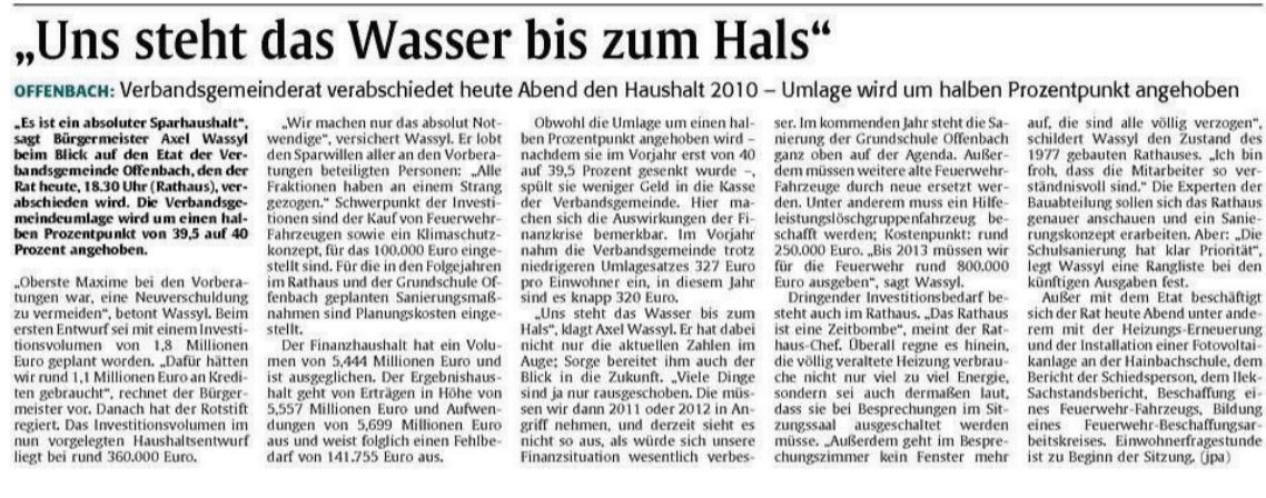 Recht spät wird der Haushalt 2010 der Verbandsgemeinde Offenbach verabschiedet: