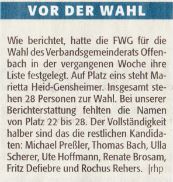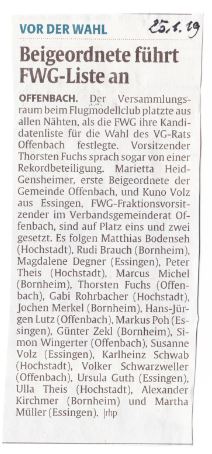 Am 21.01. findet die außerordentliche Mitgliederversammlung zur Wahl der Kandidatinnen und Kandidaten für die Kommunalwahl im Mai statt. Es kommen 49 Mitglieder und der Versammlungsraum platzt aus allen Nähten. Schriftführer Hans-Jürgen Lutz muss für die geheime Wahl Wahlscheine nachbesorgen. Schließlich kommt es zu folgender Liste:
