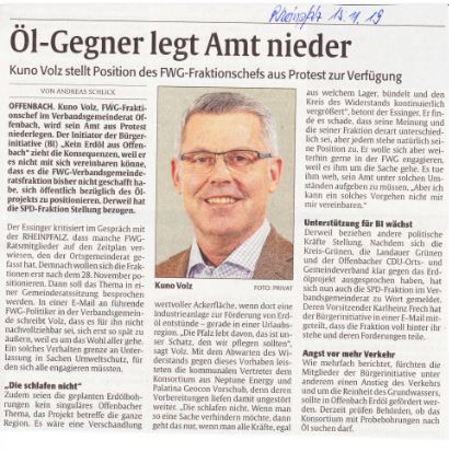 Kuno Volz kündigt seinen Rücktritt als Fraktionsvorsitzender der FWG im Verbandsgemeinderat an.